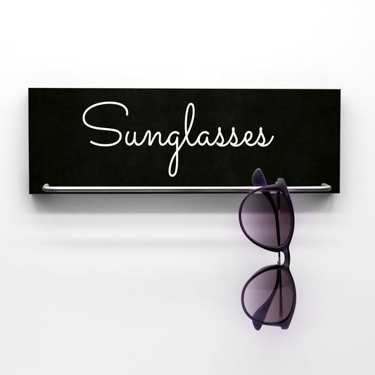 Schicker Sonnenbrillenhalter - Sunglasses - Praktische und schöne Aufhängung für Sonnenbrillen mit schöner Typo - Schwarz Weiß