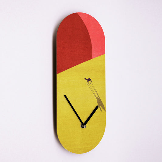 Schicke Uhrform - Sahara - Gelbe Wüste Roter Himmel - Kamel wirft Schatten - Minimalistische Natur - 2 Größen - Leises Uhrwerk - Handmade