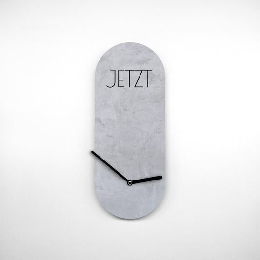 Schicke Uhrform - Jetzt - Reminder an Achtsamkeit - Im Jetzt leben - Grau - Ziffernblatt - 2 verschiedene Größen - Leises Uhrwerk - Handmade