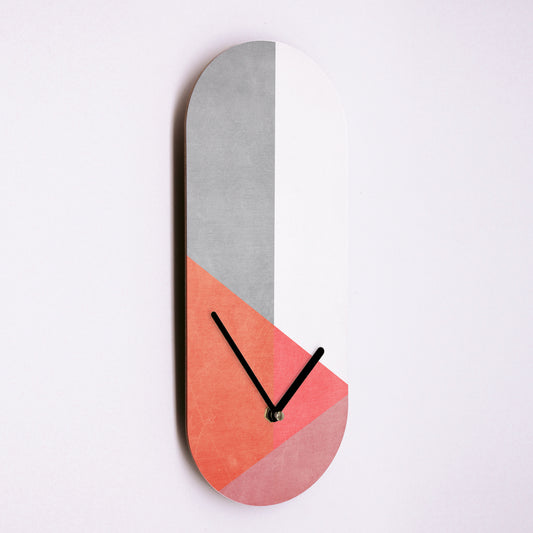 Schicke Uhrform - Schickes Wanduhr Design - Red Layer - Rot Rosa Grau Weiß - Geometrisch - Ziffernblatt - 2 Größen - Sehr Leise - Handmade