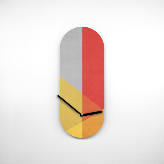 Schicke Uhrform - Modernes Wanduhr Design - Color Layer - Rot Gelb Grau - Geometrisch - Ziffernblatt - 2 Größen - Geräuschlos - Handmade