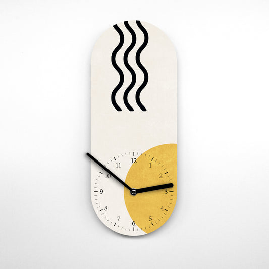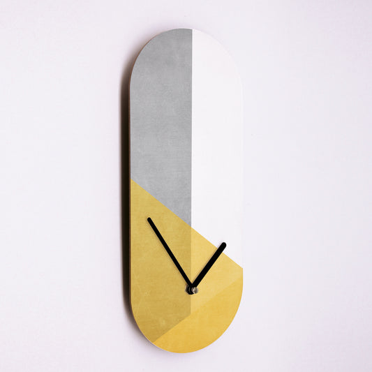 Schicke Uhrform - Modernes Wanduhr Design - Yellow Layer - Gelb Grau Weiß - Geometrisch - Ziffernblatt - 2 Größen - Geräuschlos - Handmade