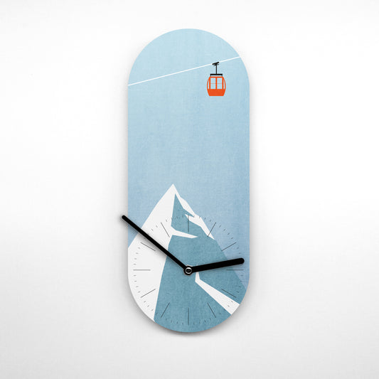 Schicke Uhrform - Alpen im Winter mit roter Gondel - Blauer Himmel - Schöne minimalistische Natur - 2 Größen - Leises Uhrwerk - Handmade