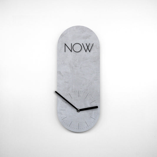 Schicke Uhrform - NOW - Reminder an Achtsamkeit - Im Jetzt leben - Nowuhr - Grau - Ziffernblatt - 2 Größen - Leises Uhrwerk - Handmade