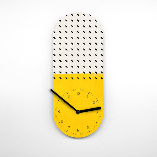 Schicke Uhrform - Sonniges Gelb mit Punkten auf Weiß - Mit und ohne Zahlen - 2 verschiedene Größen - Leises Uhrwerk - Handmade