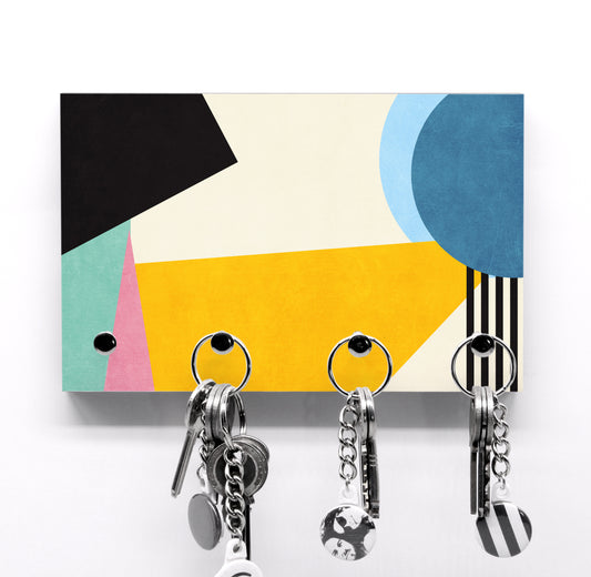 Schickes farbiges Schlüsselbrett - Bauhaus Stil - Beige Gelb Blau - Hakenanzahl wählbar - Minimalistisches Motiv - geometrisches Design