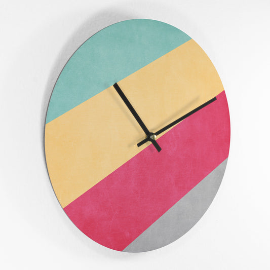 Schicke Uhrform - Modernes Wanduhr Design - Color Layer - Rot Gelb Grau - Geometrisch - Ziffernblatt - 2 Größen - Geräuschlos - Handmade