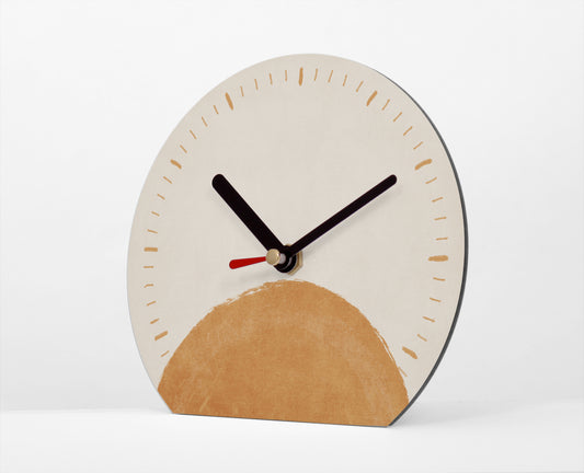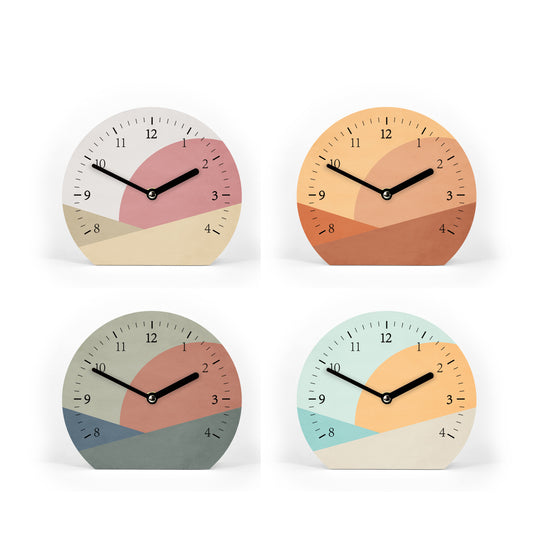 Tischuhr Sunset - Mit und ohne Striche und Zahlen - Minimalistischer Sonnenuntergang - Farbvarianten - 3 Größen - Leises Uhrwerk