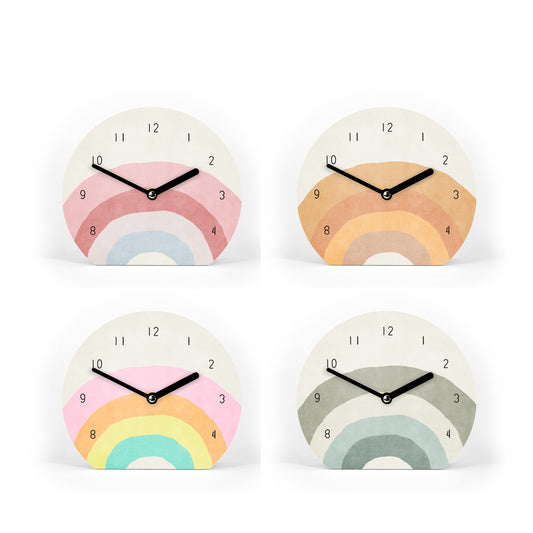 Tischuhr Rainbow - Mit und ohne Striche und Zahlen - Verschiedene schöne farbenfrohe Regenbogen - 3 Größen - Leises Uhrwerk