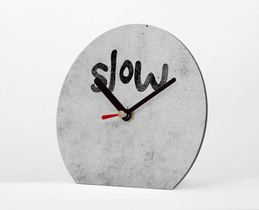 Tischuhr - Typo - Slow - Thema Zeit - Reminder Achtsamkeit - Typografisch - Kreative Uhr