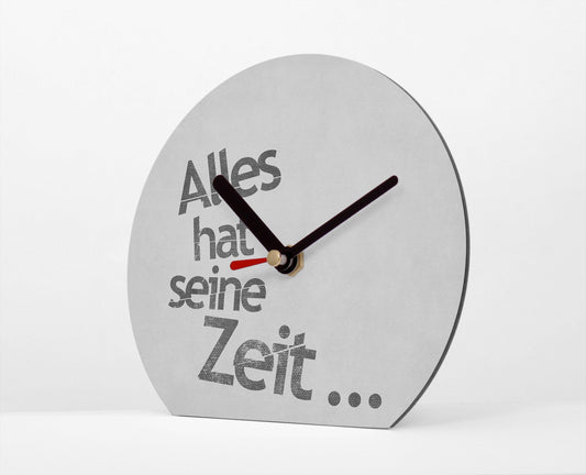Tischuhr - Typo - Alles hat seine Zeit - Guter Spruch zum Thema Zeit - Typografisch - Kreative Uhr