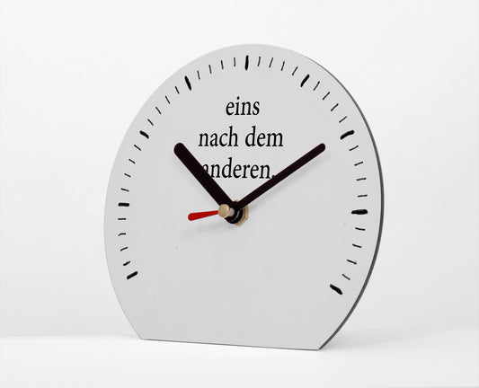 Tischuhr mit Spruch - Eins nach dem anderen - Reminder zur Entspannung - Anti Stress - Nur nicht den Kopf verlieren - Zeitmanagement - 15cm