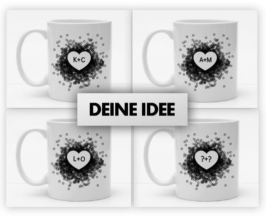 Personalisierbare Tasse mit Initialien - Herz und Sterne - 325ml - Handmade