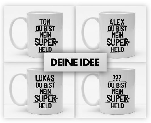 Personalisierbare Tasse mit Namen - Du bist mein Superheld - 325ml - Handmade