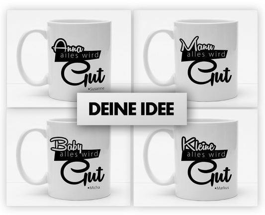 Personalisierbare Tasse mit Namen - Alles wird Gut mit persönlichen Namen - 325ml - Handmade