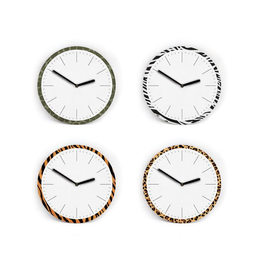 Wanduhr mit Bordüre im Animal Style - Mit und ohne Striche und Zahlen - Krokodil Tiger Leopard Zebra - 3 Größen - Leises Uhrwerk