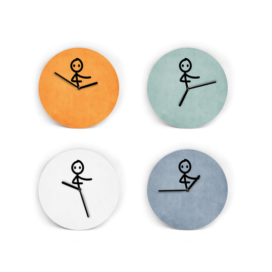 Wanduhr Kick it - Zeiger sind Beine die sich bewegen - 23 cm Groß - Mit und ohne Ziffernblatt - 12 Farbvarianten - Leises Uhrwerk
