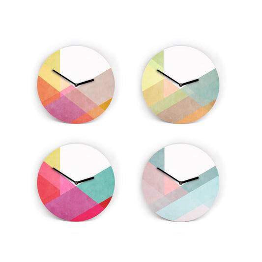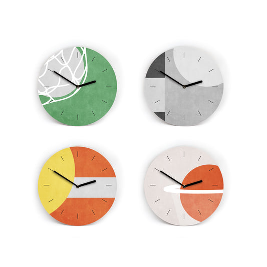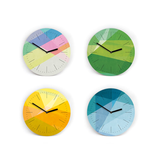 Farbige Wanduhren im Snippet Style - 3 Größen - Schöne Farbkombinationen - Farbmuster - Bunt - Blau - Gelb - Grün - Ziffern - Uhrwerk leise