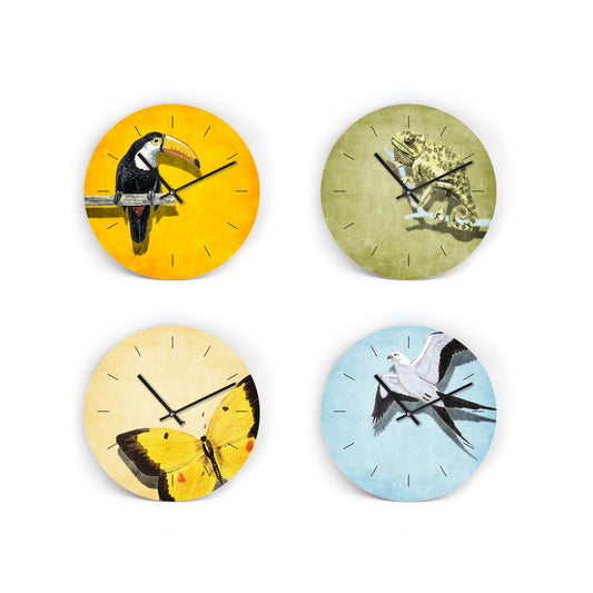 Animal Wanduhren - Illustration von Tieren und Insekten - 3 Größen - Verschiedene Farben - Ziffernblatt wählbar - Uhrwerk leise
