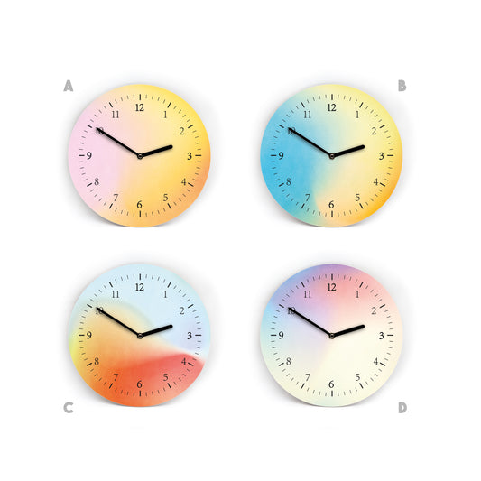 Farbige Wanduhren im Aura Style - 3 Größen - Schöne bunte Farbverläufe - Sanfte Farben - 4 verschiedene Farbkombinationen - Uhrwerk leise
