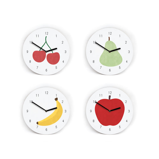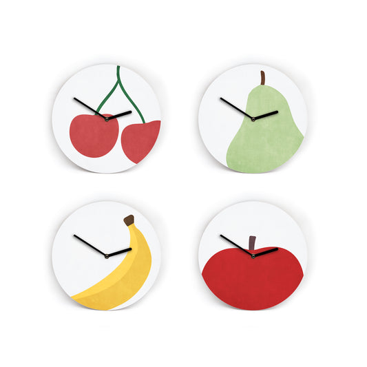Wanduhr Obst Illu Style - 3 Größen - Frisch und Fruchtig - Apfel - Banane - Kirsche - Birne - Zahlen & Striche - Uhrwerk leise