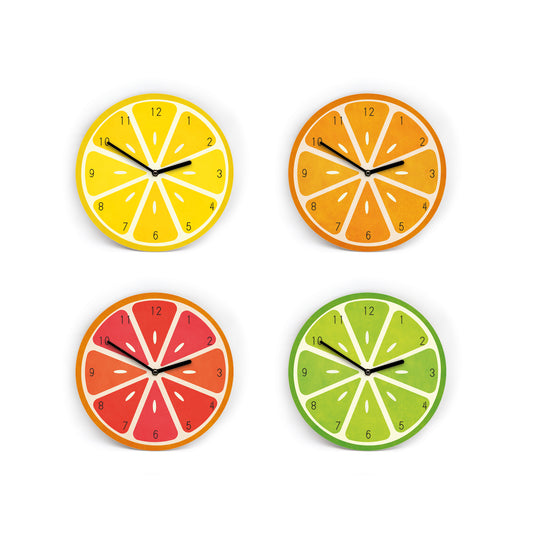 Wanduhr Zitrus - Orange Limette Zitrone Blutorange - Fruchtuhr mit klaren Zahlen - 3 Größen - Mini bis Groß - Küchenuhr - Leises Uhrwerk