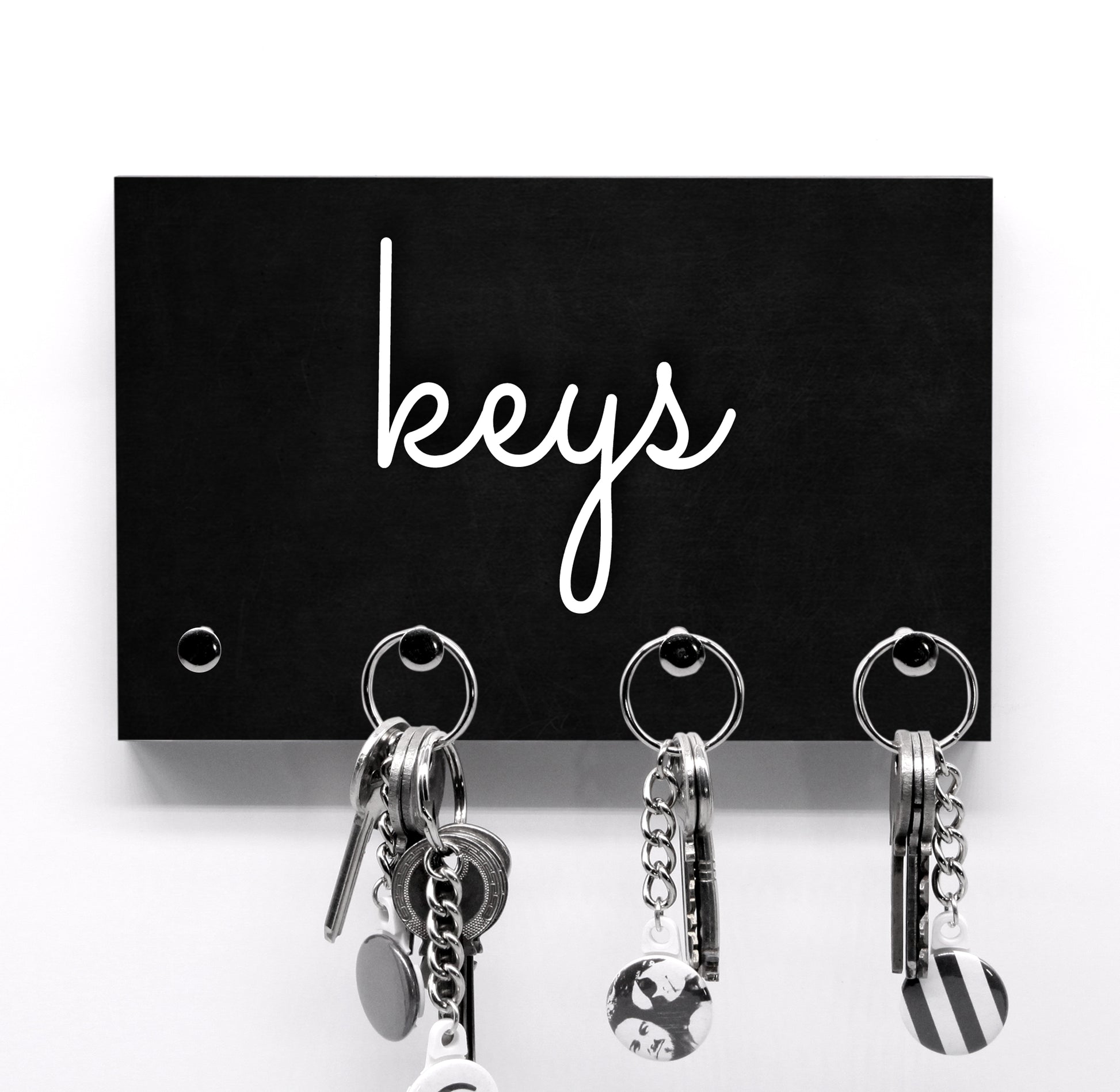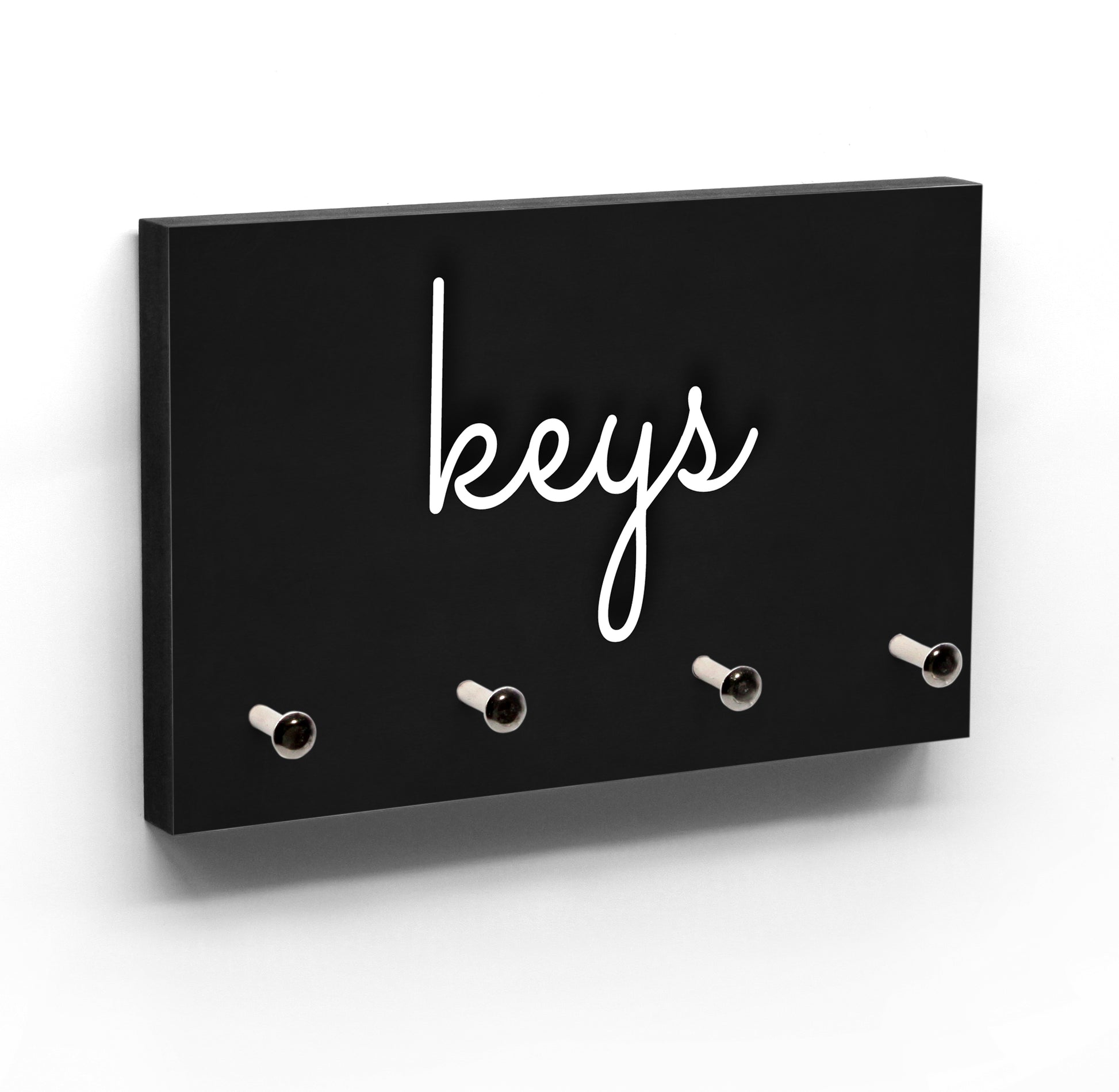 Schlüsselbrett Black Keys - Dunkles Schlüsselbrett mit Schriftzug in Weiß - Schöne Typo - Geschwungene Schrift - 3, 4 oder 5 Haken - Farbauswahl