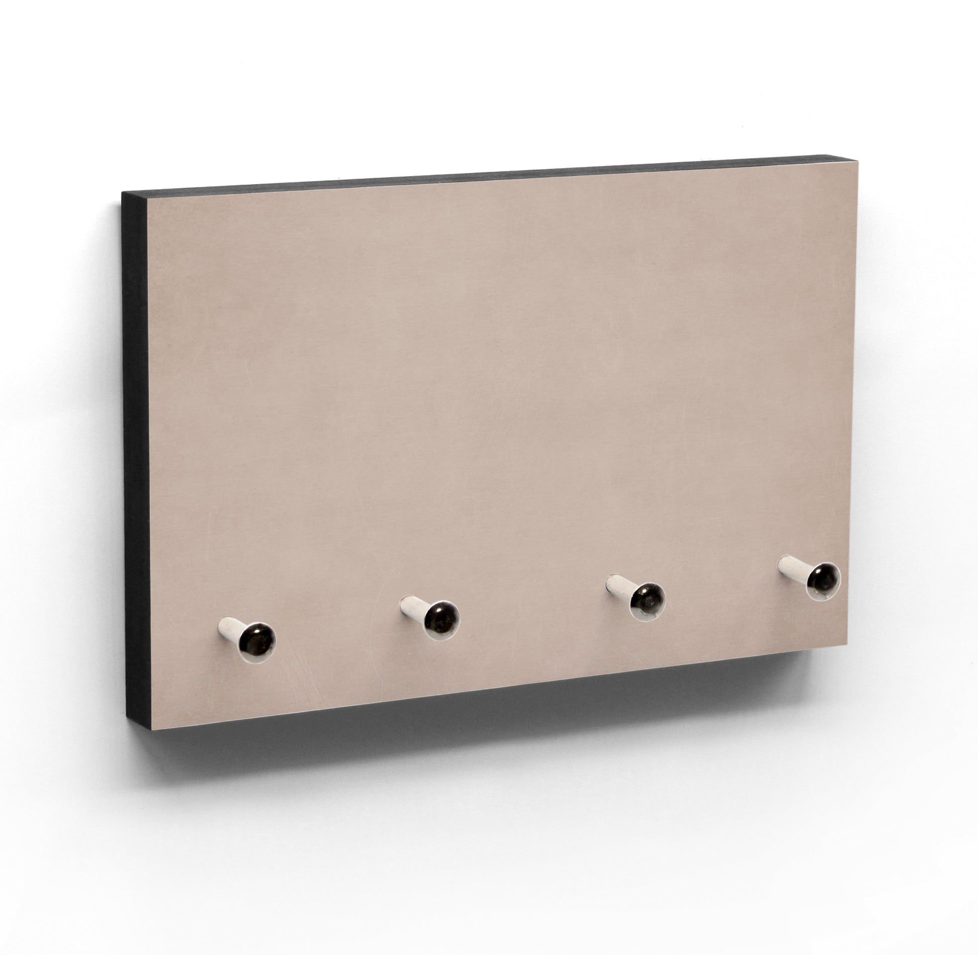 INFO: Das schwarze Brettchen aus MDF ist mit einem Kunstdruck kaschiert. Die Schlüsselhaken aus Metall sind tief in das Holz getrieben und sehr stabil. Durch den Kopf der Haken rutscht der Schlüssel nicht ab, kann aber trotzdem rasch auf- und abgehängt werden. Auf der Rückseite sind Ösen eingelassen um das Schlüsselbrett sauber mit Nägel oder Schrauben sicher und einfach aufzuhängen. Wer gerne klebt, kann das Brettchen auch mit Klebestreifen an der Wand befestigen.