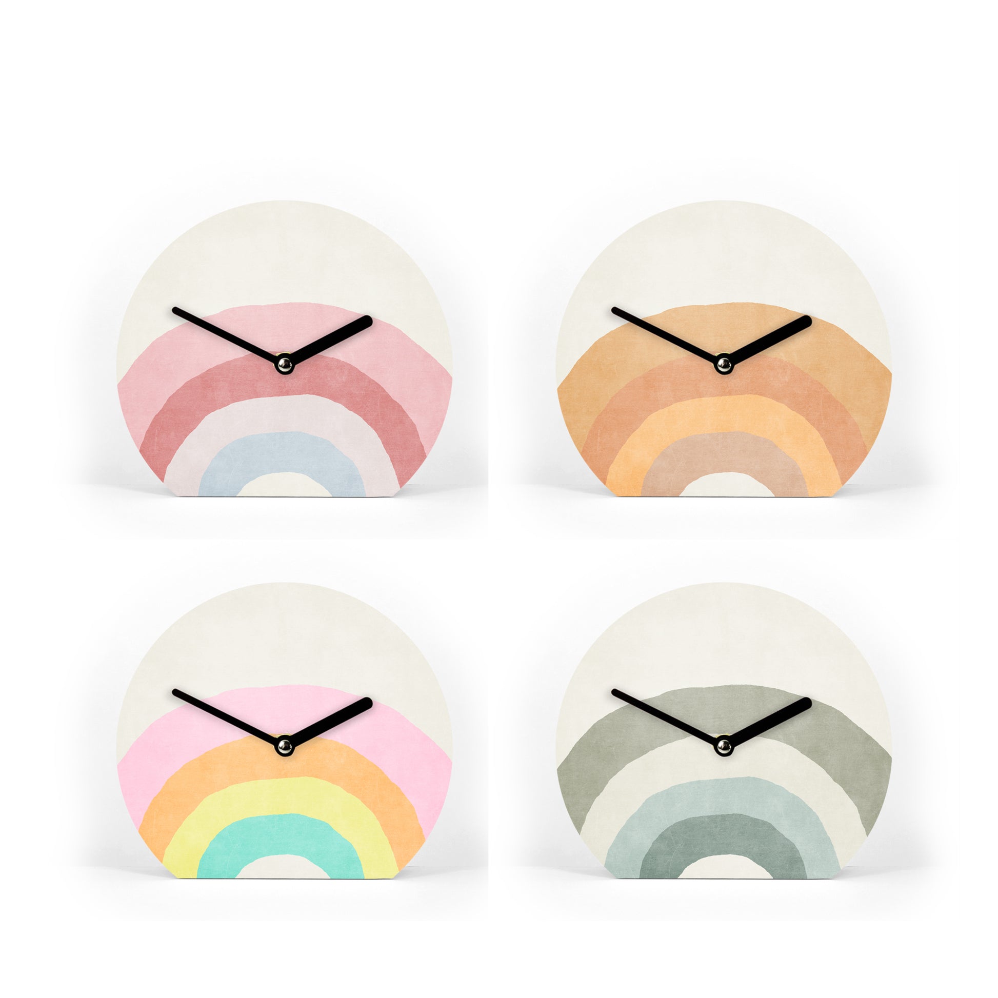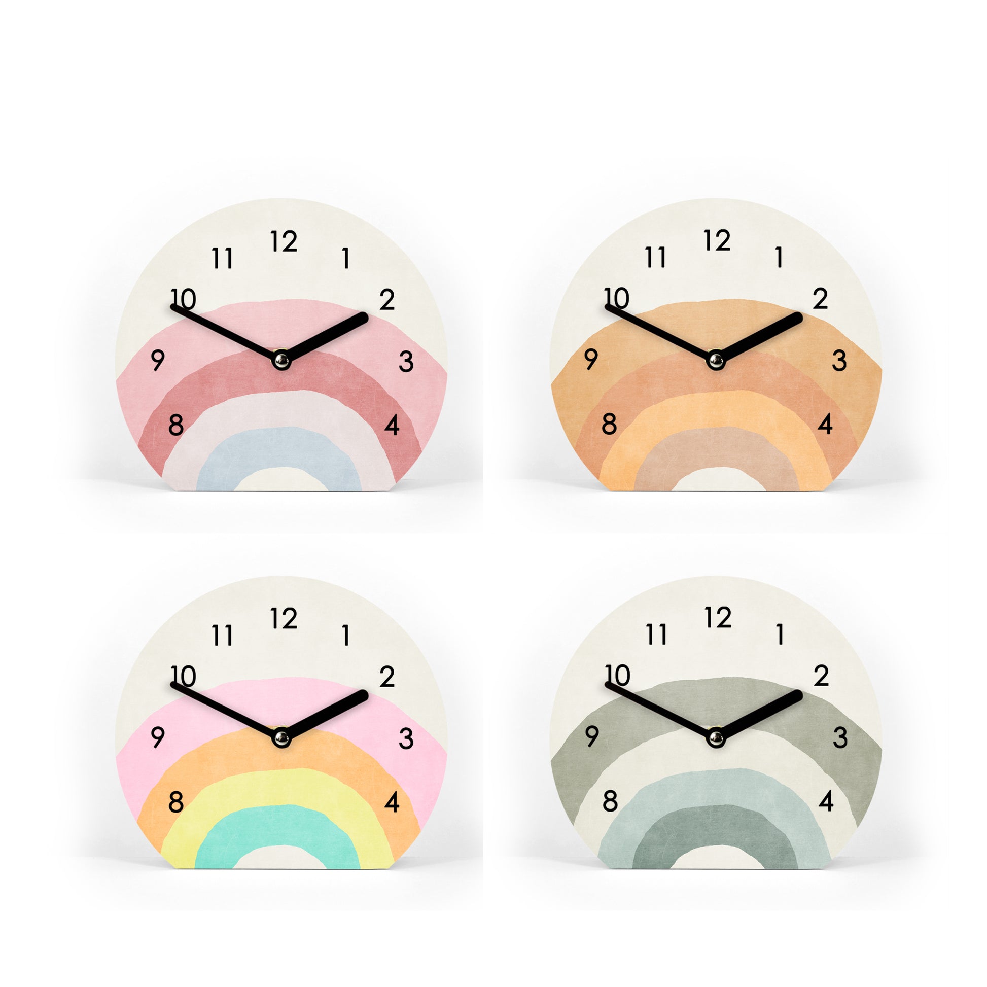 Tischuhr Rainbow - Mit und ohne Striche und Zahlen - Verschiedene schöne farbenfrohe Regenbogen - 3 Größen - Leises Uhrwerk